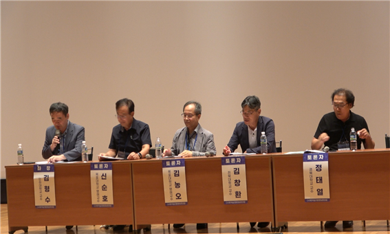 주제발표 후 인하대 김형수 교수께서 좌장을 맡아 주시고, 전북대 김창환 교수, 김농오 목포대 명예교수, 신순호 목포대 명예교수, 정태열 경북대교수 네 분이 토론자로 자리해 주셔서 한 세션을 잘 마무리 하게 되었습니다.